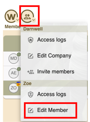 Click on the W menu and select Members.
