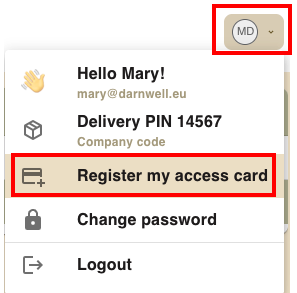 Go to the user profile menu again, select Register my access card and follow the instructions provided here.