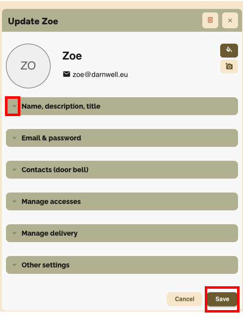 Note that there is a small up and down arrow to expand or collapse each section. Clicking the up arrow will hide the section, while clicking the down arrow will open it so you can view and edit it.