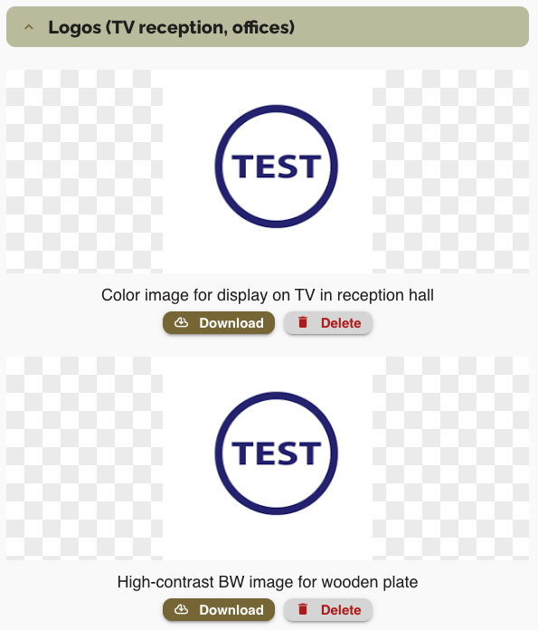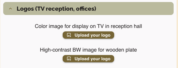 In the Logos (TV reception, offices) section, you can upload your logo.