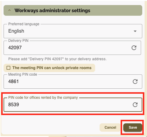 How to change your office, meeting or delivery PIN