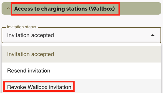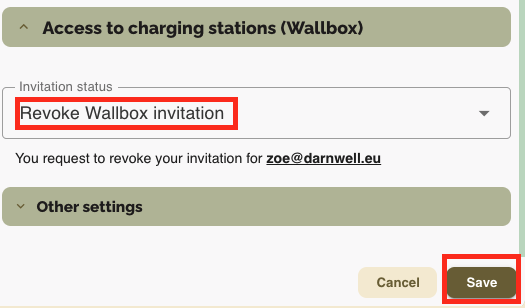2. Select Revoke Wallbox invitation and click Save.