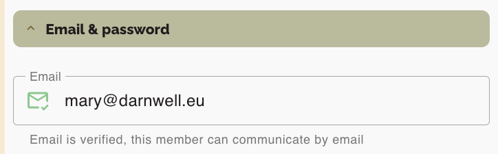 - In the Email & password section, if your email hasn’t been validated yet, you will see an envelope icon.