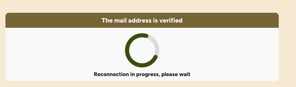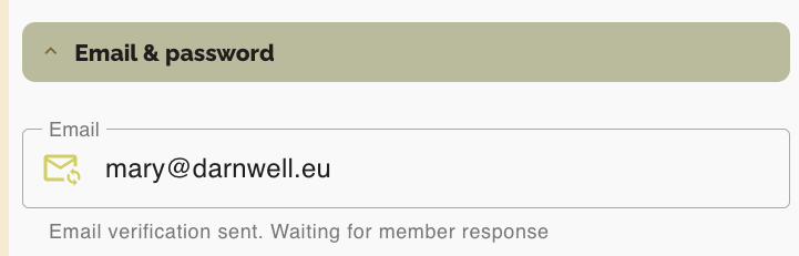 - Displayed message: Email verification sent. Waiting for member response